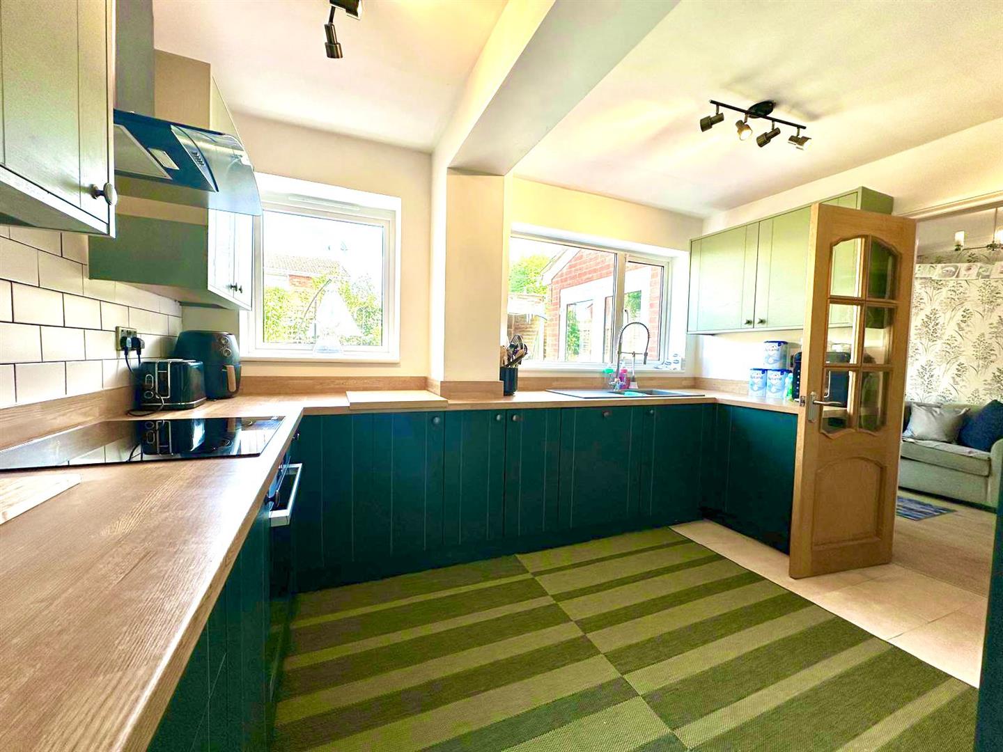The modern fitted kitchen offers integrated appliances, a handy pantry and a utility room which offers side access to the garden, ideal for those with dogs.